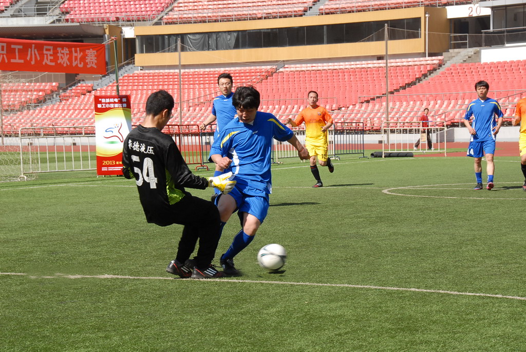 在争取进入四强的比赛中,天海公司足球队与北京北重汽轮电机公司代表队展开激战,面对强敌,赛事异常艰辛.在比赛踢成平局后,开始激烈的点球大战,最后北重公司代表队以二球险胜,天海公司与四强失之交臂.尽管没有拿到四强的入场券,但天海足球队的精彩表现得到了组委会和现场观众的一致好评。通过比赛,极大地激发了员工参与足球运动的积极性,促进了足球运动水平的提高。